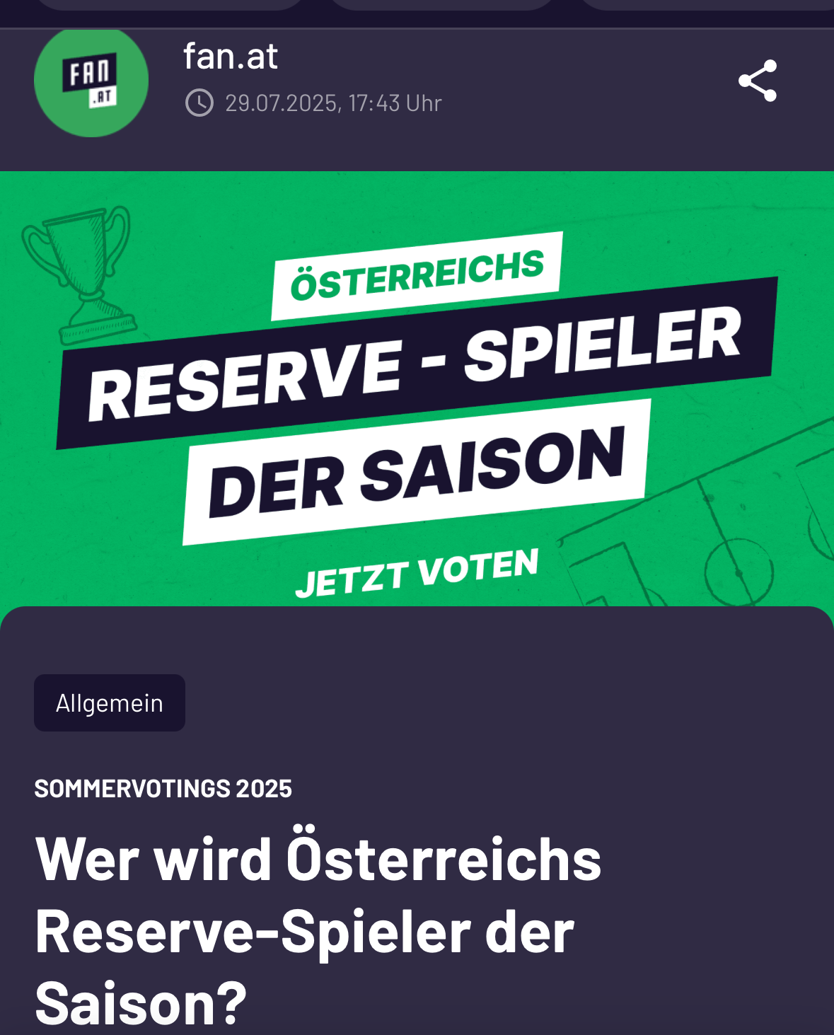 Beim großen Fan-Voting auf der Fußballplattform fan.at wurde Bernard Tomaj zum beliebtesten U23-Spieler Österreichs der Saison 2024/25 gewählt.