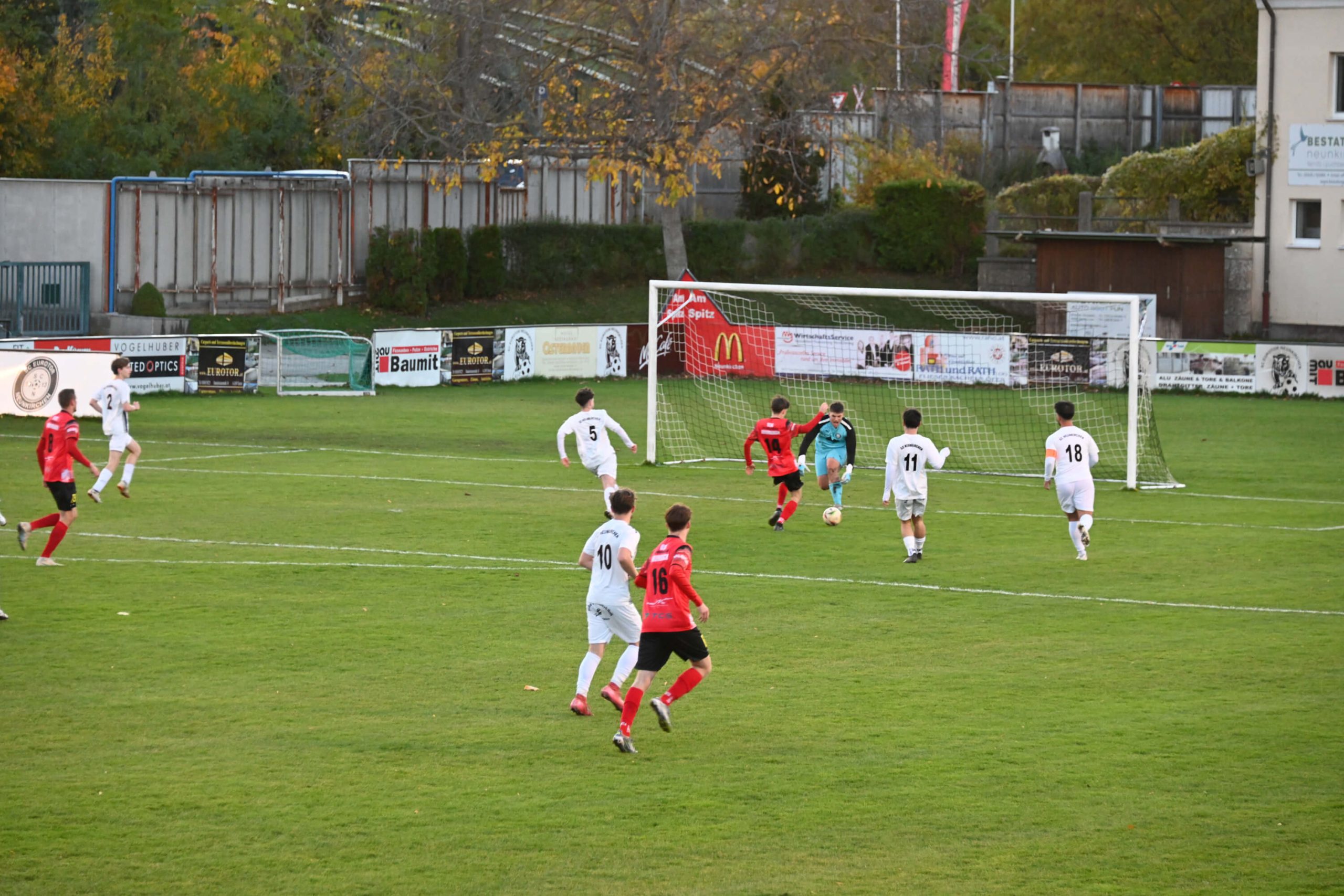 Krumbach schlägt zurück, doch Lukas Riegler gleicht aus und trifft später ein zweites Mal. Zusätzlich lenkt ein Krumbacher Verteidiger den Ball unglücklich ins eigene Tor. In der Schlussphase bleibt Neunkirchen dran: Emre Orhan besorgt in der 75. Minute den Ausgleich zum 3:3.